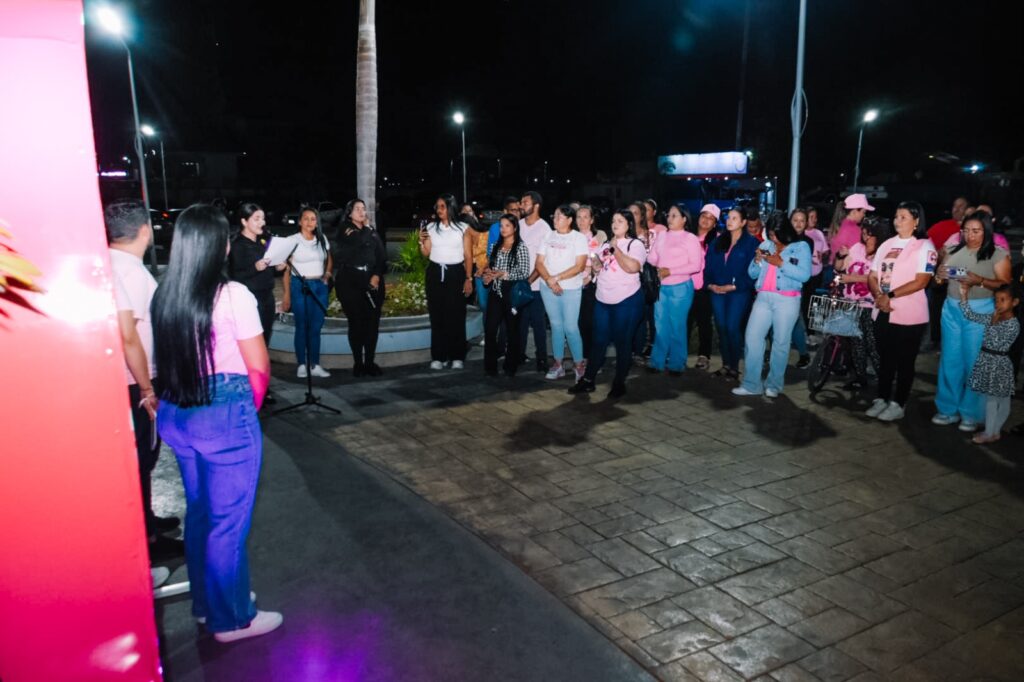 Como parte de las actividades del mes de la lucha contra el cáncer de mama, la primera dama y presidenta de la Fundación Dama del Sur (Damasur), Hillary Soto, encabezó el tradicional encendido del lazo rosa desde la redoma La Flor de Sarón, en la urbanización La Coromoto.